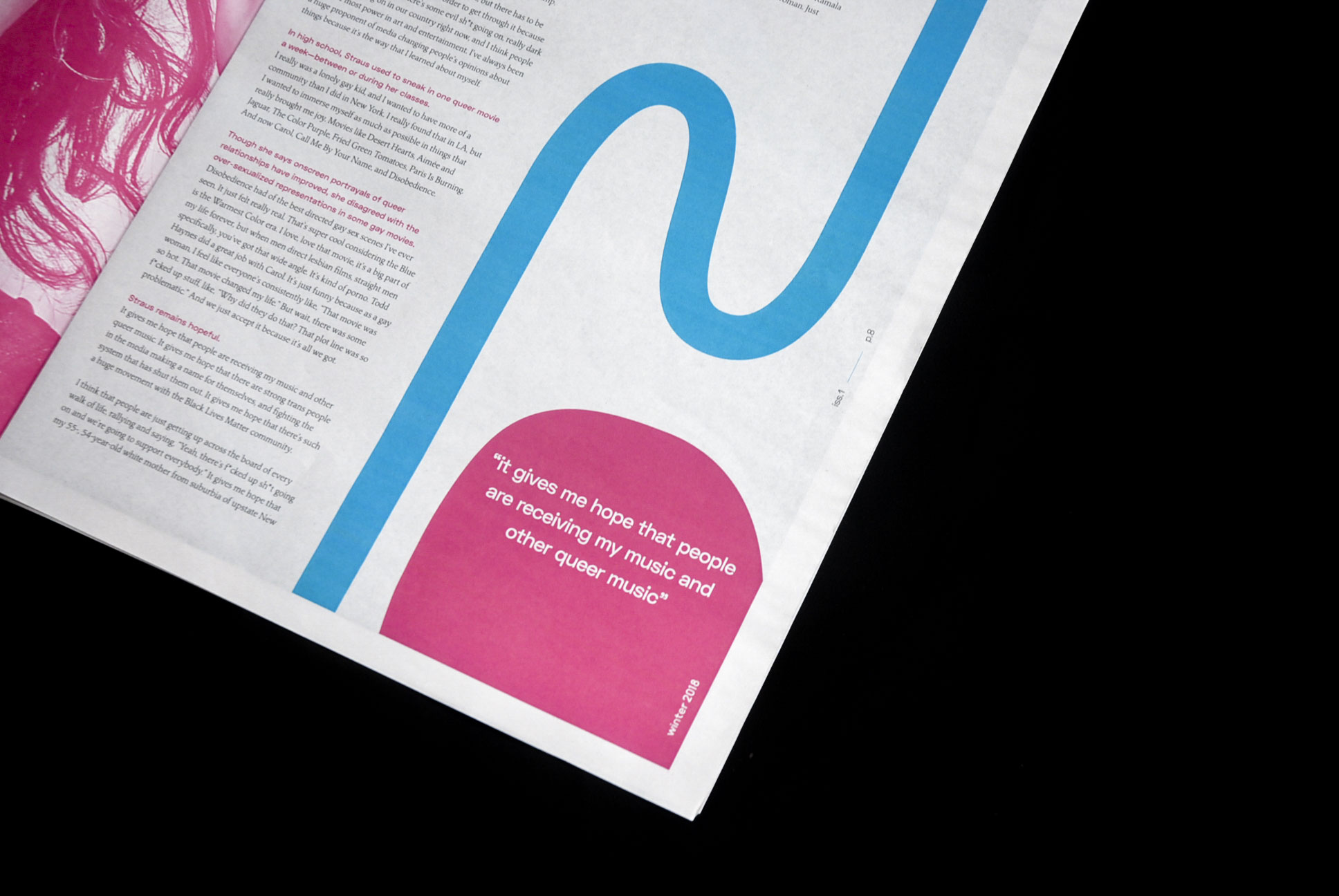Offbeat magazine is an imaginary publication that exists at the intersection of indie music and the LGBT+ community. Through a collection of interviews, the publication explores each artists' experience at this intersection. Bold graphics and meticulous typography tie all these different intricate stories together to create a beautiful piece of queer media.